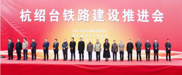 中鐵總、省發改委、中鐵上海局、臺州市、紹興市等相關領導、民營聯合體股東代表,新昌、嵊州等高鐵沿線屬地相關負責人,省交投集團及勘察設計、施工、監理等單位代表出席推進會,并見證這一歷史時刻。