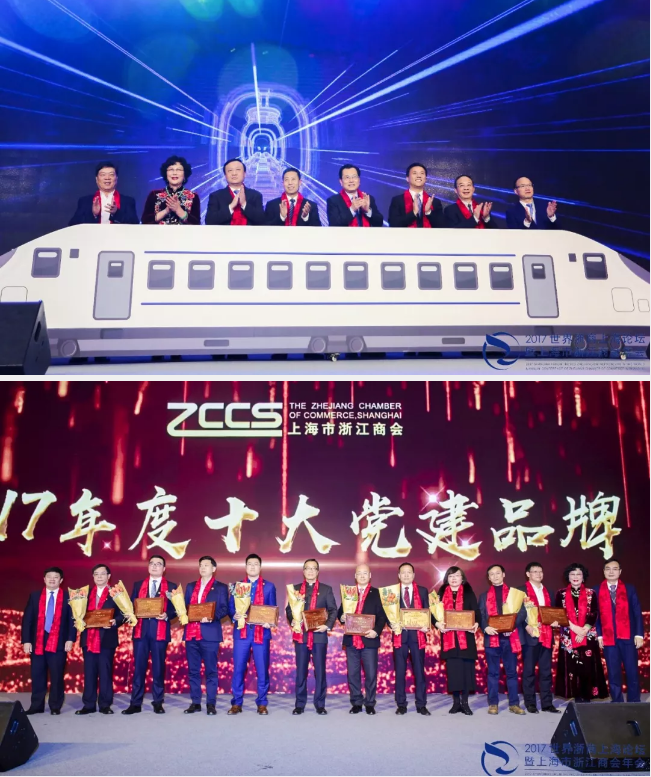商會黨委陳愛蓮書記與郭廣昌會長等見證了上海市浙江商會輪值會長的交接儀式,共同啟動浙商助力長三角大交通一體化發(fā)展平臺,并為十大黨建品牌頒獎。