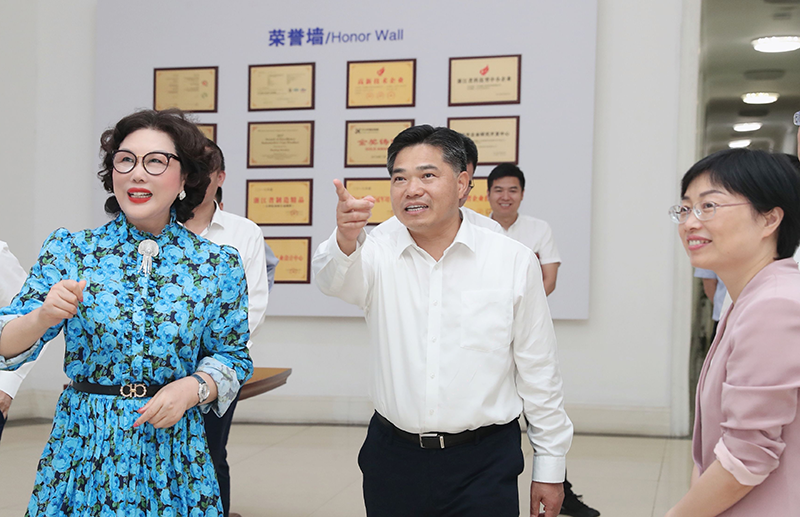 5月27日,商務部黨組成員、副部長盛秋平一行來萬豐集團調研國際國內雙循環,新昌縣委書記黃旭榮、萬豐集團董事局主席陳愛蓮等陪同調研。