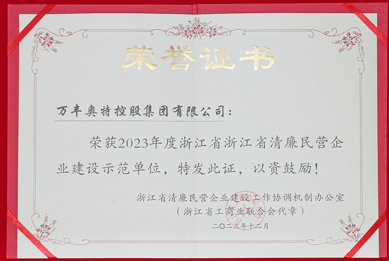 12月4日,浙江省清廉民營企業建設現場推進會在嘉興平湖舉行。為激勵先進、示范引領,浙江省委統戰部、省工商聯牽頭組織開展清廉民企建設示范單位評選工作,萬豐集團獲評“2023年度浙江省清廉民企建設示范單位”。