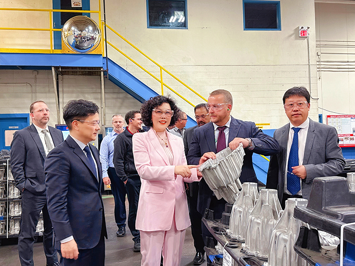 加拿大時間9月26日,萬豐集團董事局主席陳愛蓮視察加拿大萬豐鎂瑞丁公司,實地走訪工廠車間,親切鼓勵干部員工。萬豐集團總裁董事長陳濱陪同視察。